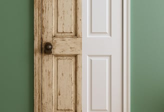 Pintamos a área comum e até restauramos portas — sempre com respeito à rotina dos moradores.